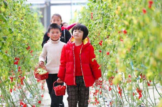 1月3日,在浙江省湖州市德清县,游客采摘新鲜的小番茄。王正摄(人民视觉)
