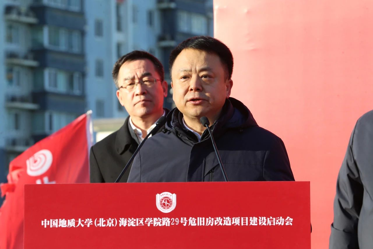 路刚代表参建公司讲话,向项目启动表示热烈祝贺,向各方支持致以诚挚感谢。他表示,中国地质大学(北京)作为地学的摇篮育人无数,北京建工能参与校园建设,深感荣幸与责任重大。回首新中国成立之初,建工与学院路“八大学院”渊源深厚,张百发青年突击队诞生于地大工地,传承至今、激励奋进。如今,建工将秉持铁军精神,融合地大攀登精神,严控工程质量进度,配合学校保障教学生活,力推项目成为学校与区域亮点,不负期望。展望未来,期待校企双方能深化合作,助力教育强国,彰显国企担当。