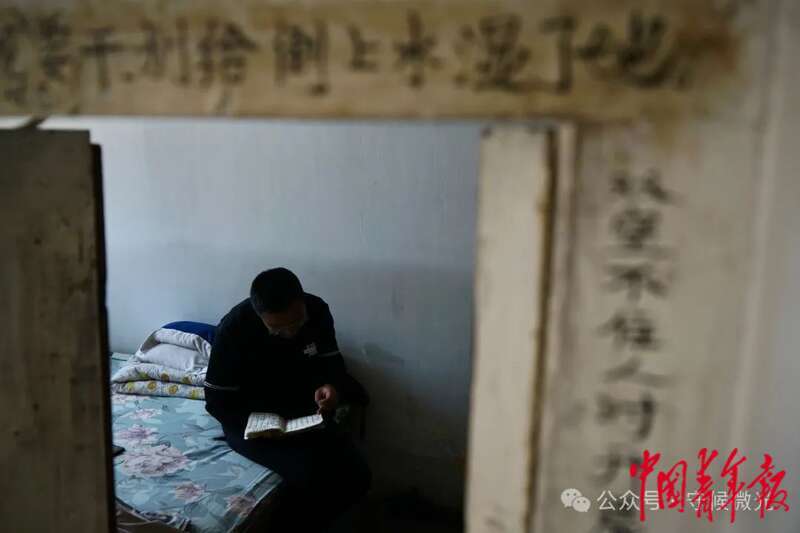 4月17日,山西代县,张宏刚坐在炕边翻看父亲张福青59年前写的日记,这是他第一次从家中翻出父亲59年前的日记本。这个春天,山西省代县上高陵村78岁的农民张福青过世了,而他生前写满院墙的文字走红网络。这令许多人想到史铁生和他的那句名言:“唯有文字能担当此任,宣告生命曾经在场。”中青报·中青网记者 李强/摄