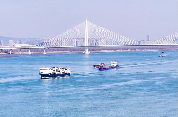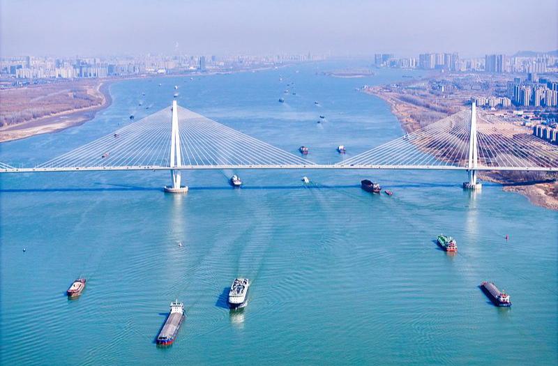 南京:长江“黄金水道”运输繁忙 货运船舶往来穿梭