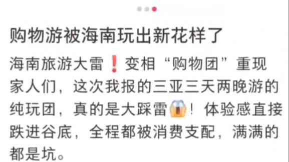 网友吐槽三亚“纯玩团”体验差 官方:如查证属实将依法严惩