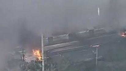 巴西一小飞机坠毁砸中公交车 现场燃起熊熊大火黑烟冲天